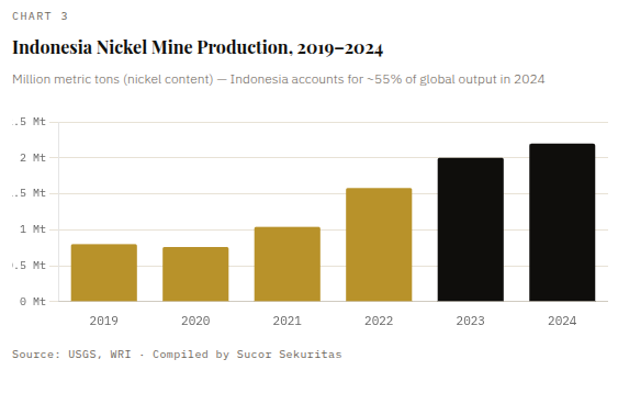 Last week, we saw headlines around the government’s plan to introduce additional levies on the nickel industry, potentially taking effect as early as April 2026. The move is part of efforts to strengthen state revenues and keep the fiscal deficit under control amid rising global oil prices and ongoing Middle East tensions. While the final structure is still being formulated, the policy direction points toward a more progressive mechanism tied to commodity prices, potentially aligning with broader policy goals such as downstreaming and supply discipline in the global nickel market if implemented. However, the timing could be challenging given nickel prices have already corrected significantly from their 2022 peak, leaving industry margins more compressed and financial buffers relatively thinner.