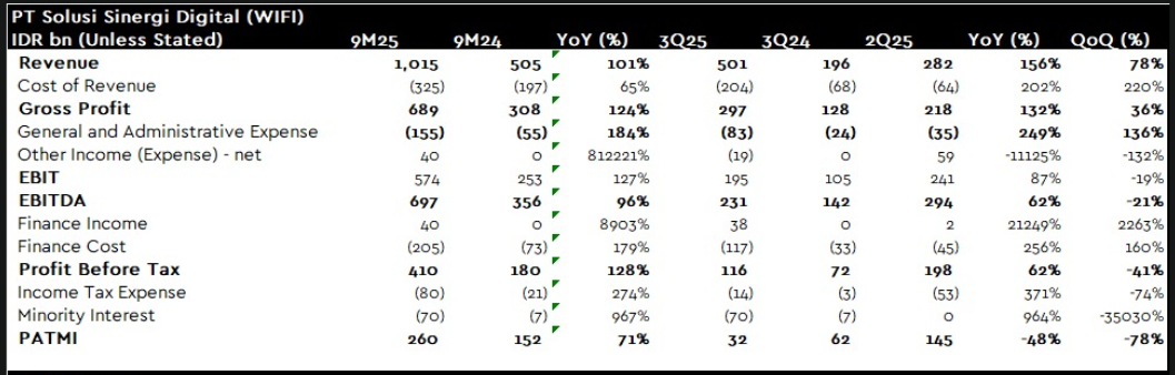 Last Friday, WIFI shares corrected sharply to 3,620 (-14.82%), triggered by a weaker-than-expected Q3 2025 earnings print. However, the sell-off reflects a short-term earnings shock, rather than any deterioration in the company’s underlying fundamentals.