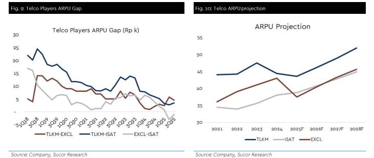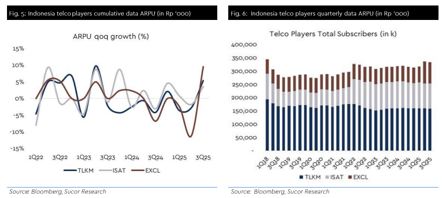 The Indonesian telecommunications industry is entering a promising new chapter as major players pivot away from value-destructive price wars toward a more disciplined pricing strategy. Our analyst seeing a structural shift where operators are prioritizing profitability over aggressive market-share battles. This is evidenced by the industry's Average Revenue Per User (ARPU) rising to Rp40.7k (+6% qoq) in 3Q25, signaling that the supply-side price wars are finally cooling down. As the market reaches saturation and SIM consolidation takes hold, the focus has shifted toward service value, creating a much healthier long-term outlook for the sector.