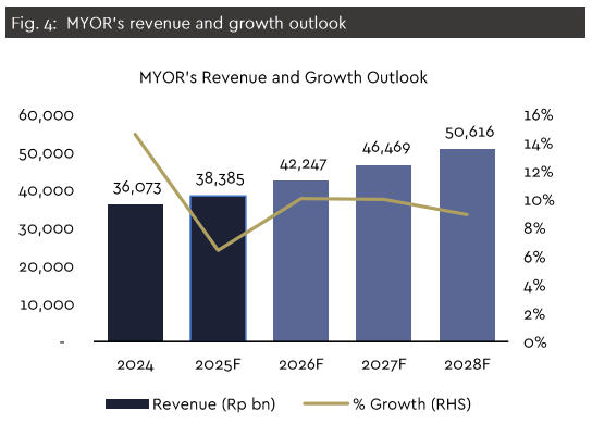 Stronger seasonal demand during the holiday period, alongside the realization of BTL (Bantuan Langsung Tunai) and THR disbursements, is expected to drive a solid 4Q25 performance. The packaged food segment remains the key earnings anchor, while a gradual recovery in beverages is beginning to take shape. Although margins were pressured earlier in the year due to elevated raw material costs, the latest quarter marks a clearer sequential rebound and sets a firmer base heading into 2026. Against this backdrop, MYOR stands to benefit meaningfully from the improving operating environment.