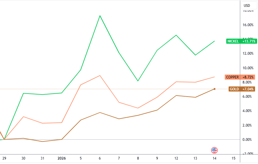 This environment has naturally favored safe-haven and commodity-linked themes. Gold prices remain firm amid heightened geopolitical uncertainty, while nickel and copper continue to find support from supply-side constraints and structural demand tied to the global energy transition—particularly electric vehicles, batteries, and electronics. While not pure safe havens, these metals combine defensive characteristics with long-term industrial relevance.