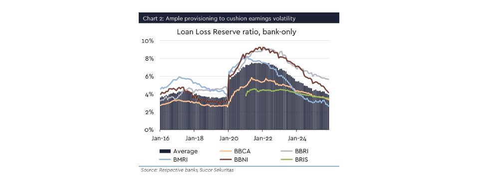 The nationwide rollout of the CORETAX system this year is a game-changing structural reform that strengthens public finances and reduces Indonesia's long-term reliance on debt. By establishing a modern tax infrastructure that reduces leakages and broadens the tax base, this reform justifies a strategic rotation into domestic-oriented sectors. As tax revenues are channeled more efficiently through the financial system, we anticipate a surge in sector liquidity that will drive down funding costs and support a material acceleration in credit expansion by 2H26.